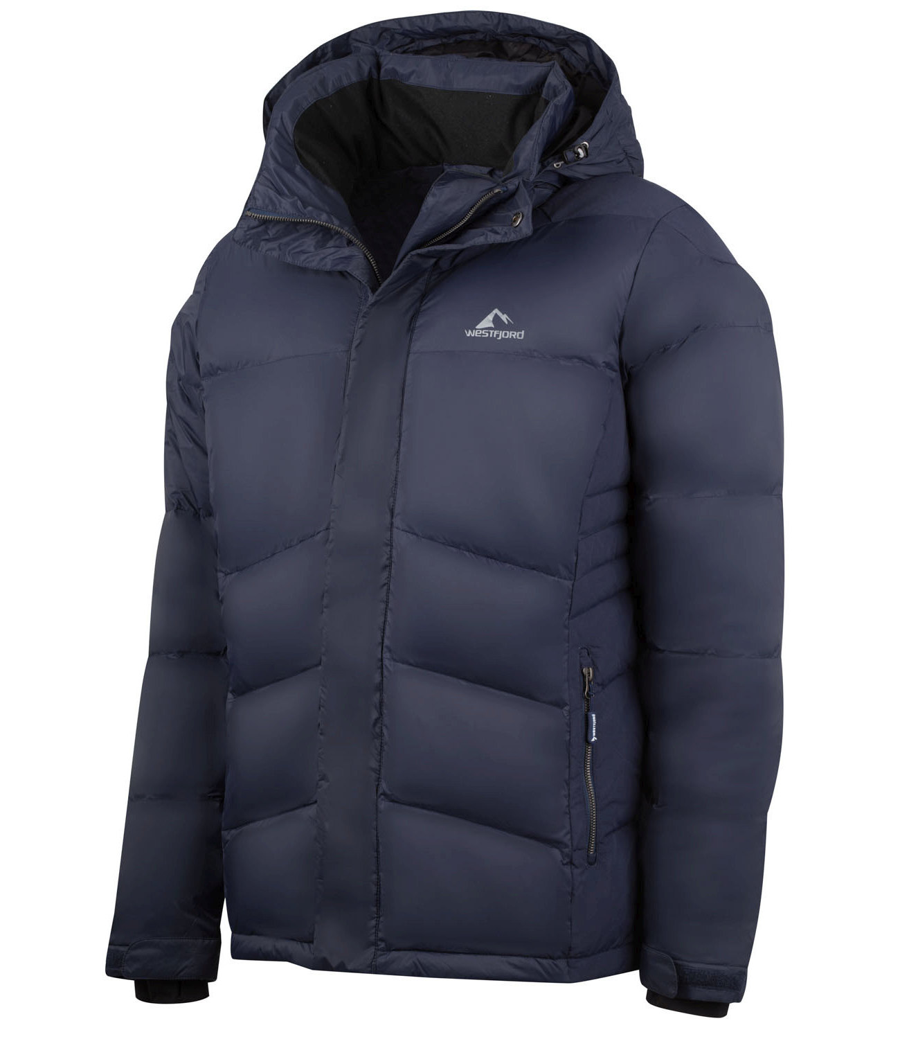 Warm, water resistant down jacket for extended use in sub-zero temperatures. This jacket is exceptionally light, with an extremely soft, tear resistant polyamide outer fabric that is windproof and very breathable. Double storm flaps prevent cold bridging and wind ingress at the main zip to ensure cosy warmth in icy winds. A longer cut, a hem draw cord, an adjustable, lined hood that can be detached from the jacket, and snug fitting cuffs with thumb holes provide additional comfort in cold weather. The jacket has two hand pockets (outside) and a chest pocket (inside). Outer fabric and lining: 100% polyamide; fill: duck down (90/10).